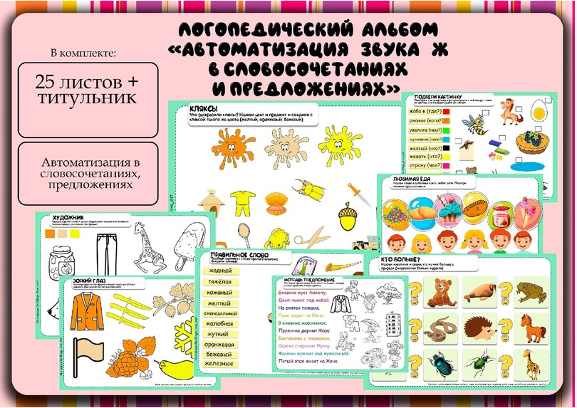 Альбом игр на автоматизацию звука Ж в словосочетаниях и предложениях.
