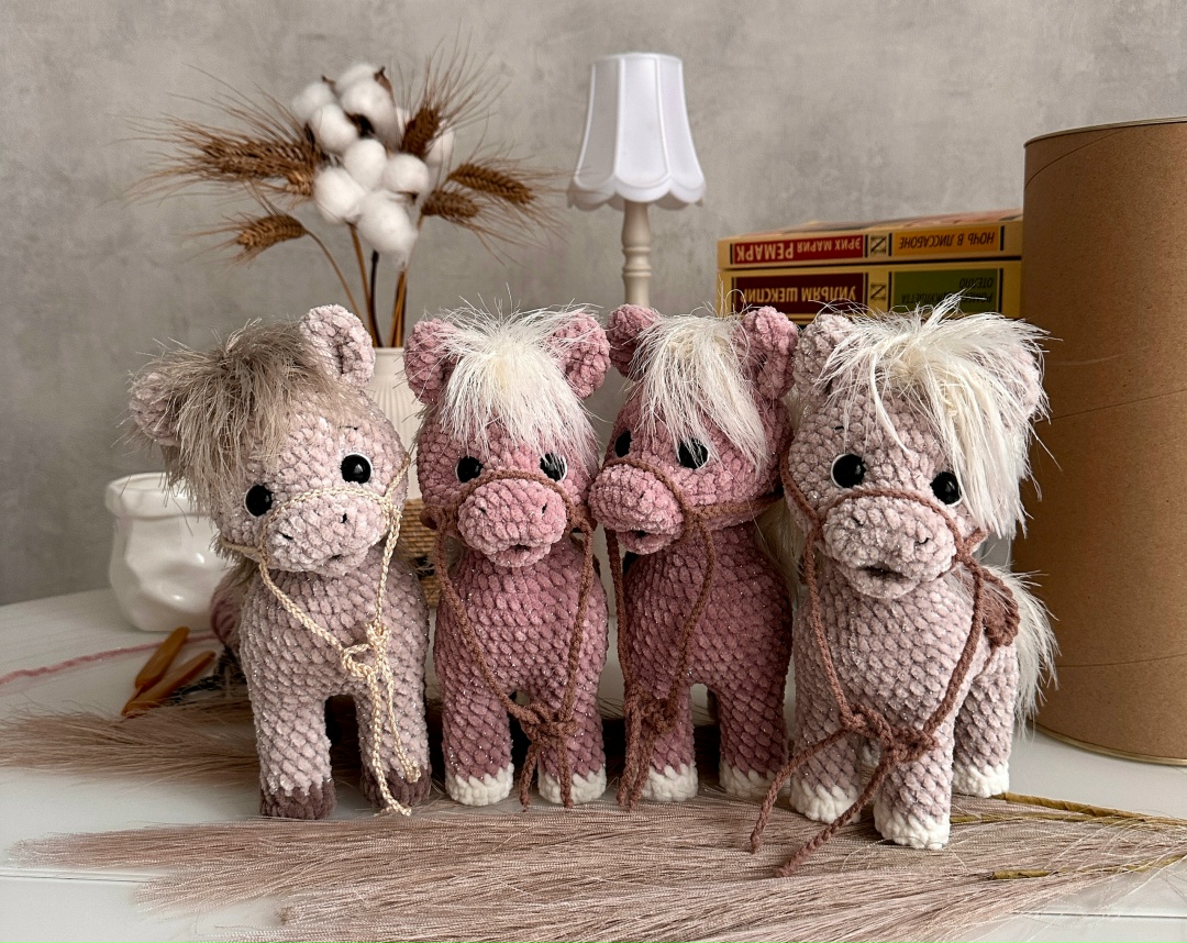Лошадка вяжется цельно, пришить нужно будет ушки, хвостик и маленький ротик.