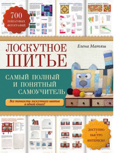 Невероятно полезный для начинающих мастериц пошаговый самоучитель по одному из самых любимых в нашей стране виду рукоделия — лоскутному шитью! В книге дана вся необходимая информация о материалах, инструментах и приспособлениях, которые понадобятся в работе, приемах выкраивания и сшивания лоскутков ткани, техниках лоскутного шитья и способах их комбинирования, вариантах оформления края изделия кантом и декорирования готовых изделий с помощью аппликаций, кружева, тесьмы, пуговиц. Благодаря ярким пошаговым фотографиям, детальным описаниям выполнения каждого этапа работы вы с легкостью освоите все тонкости лоскутного шитья и сможете самостоятельно создать совершенно очаровательные сумочки, косметички, подушки, чехлы, декоративные панно, различные аксессуары для кухни и многое другое!