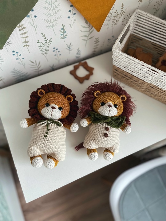 32 страницы подробного описания вязания игрушки и одежды на фото, два варианта вязания гривы