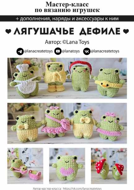 Мастер-класс «Лягушачье дефиле» по вязанию игрушек крючком. Лягушки в стильных образах с модными аксессуарами.