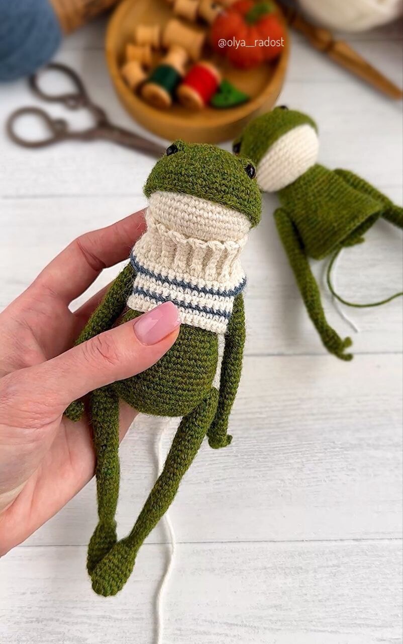 Предлагаю Вашему вниманию мастер-класс по вязанию лягушки крючком. Мастер-класс представлен на 34 страницах. Подробное пошаговое описание вязания игрушки со множеством поясняющих фотографий. Голова и лапы лягушки подвижные, на шплинтовых креплениях. Как работать с креплением показываю в МК. При использовании указанных материалов рост игрушки получится 20 см.