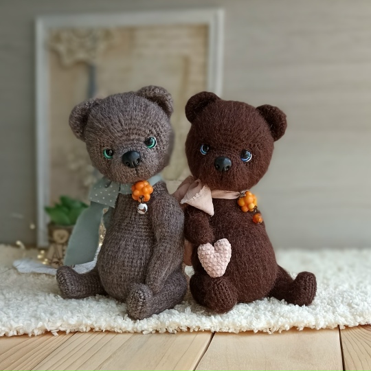 Все мишки связаны по одному описанию, просто из разной пряжи.