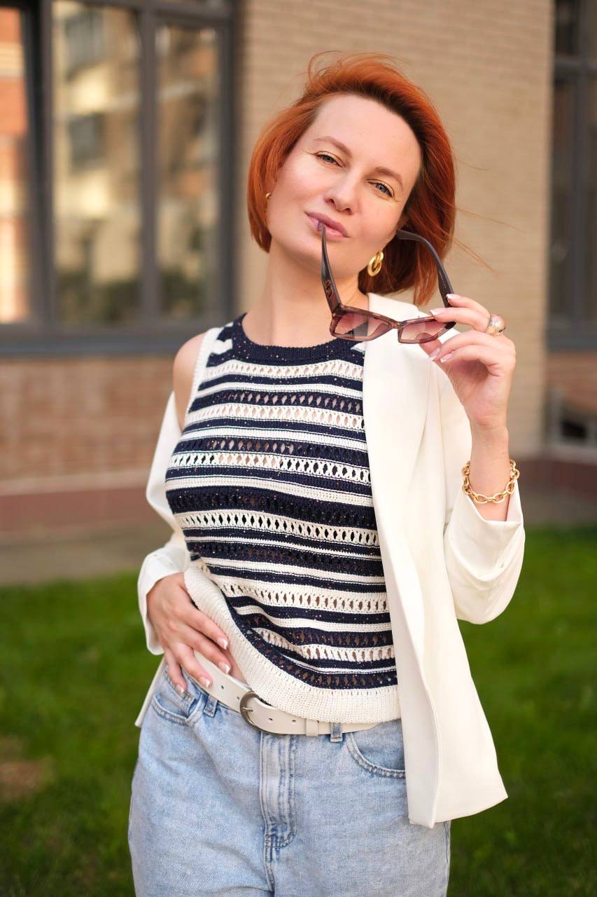 Майка вяжется по вашим замерам из летней пряжи для крючка 2.2 — 3.0.