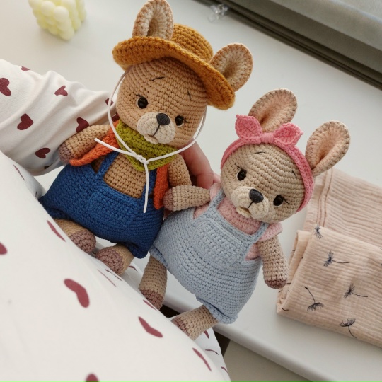 Включает в себя полное описание процесса вязания кенгуру(в 2х цветовых вариация) и 2х видов комплектов одежды(для мальчика и девочки), которые можно комбинировать