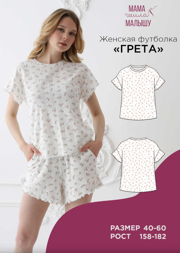 Женская футболка «Грета» –– нежная и очаровательная модель, которая создана для самых уютных моментов дома.
