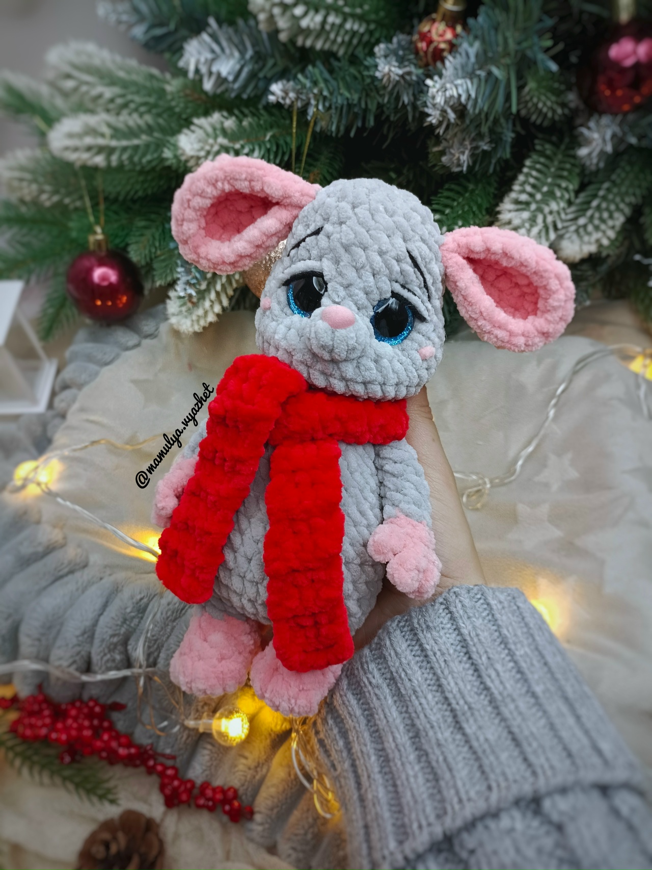 «Мышонок» из рекомендованных материалов получается 18 см. ВАЖНО! Размер готовой игрушки может отличаться от заявленного, если будут использованы другие материалы. Также размер зависит от плотности Вашего вязания.