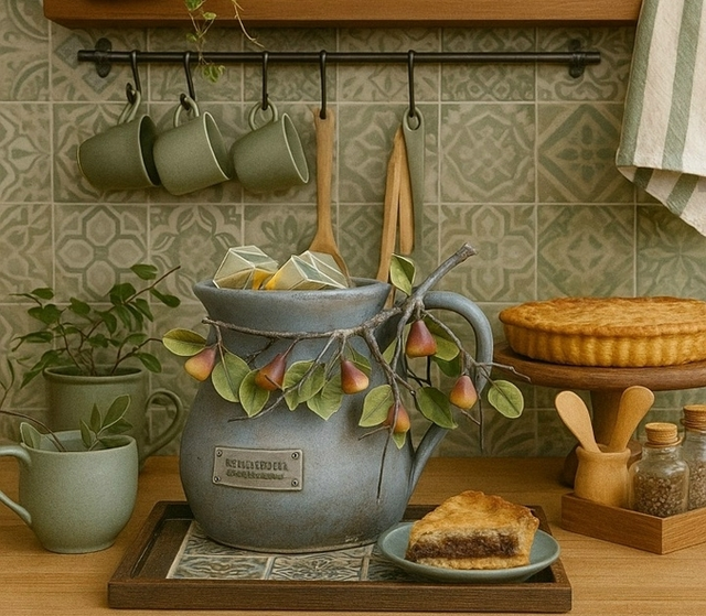 — Объёмный, выразительный кувшин с веточкой груш, который передаёт настроение деревенского кантри.