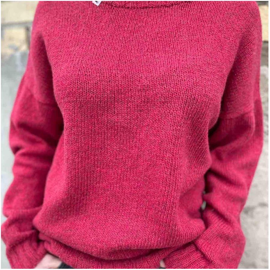 Красный свитер — пряжа Merino Lambswool Knoll, это кардный меринос (100% шерсть ягнят) 212 м/50 гр, в одну нить.