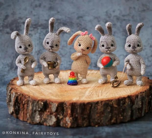 И вот готовы одни из самых маленьких героев, если без ушек, то зайки 5 см ростиком.