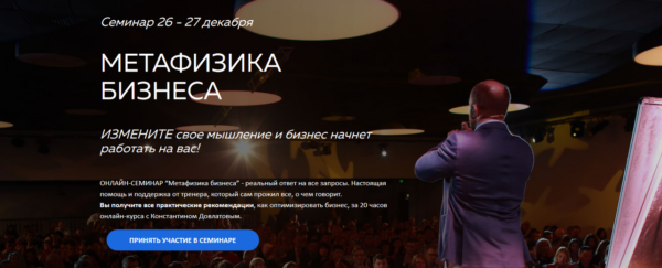 ОНЛАЙН-СЕМИНАР “Метафизика бизнеса” — реальный ответ на все запросы. Настоящая помощь и поддержка от тренера, который сам прожил все, о чем говорит.