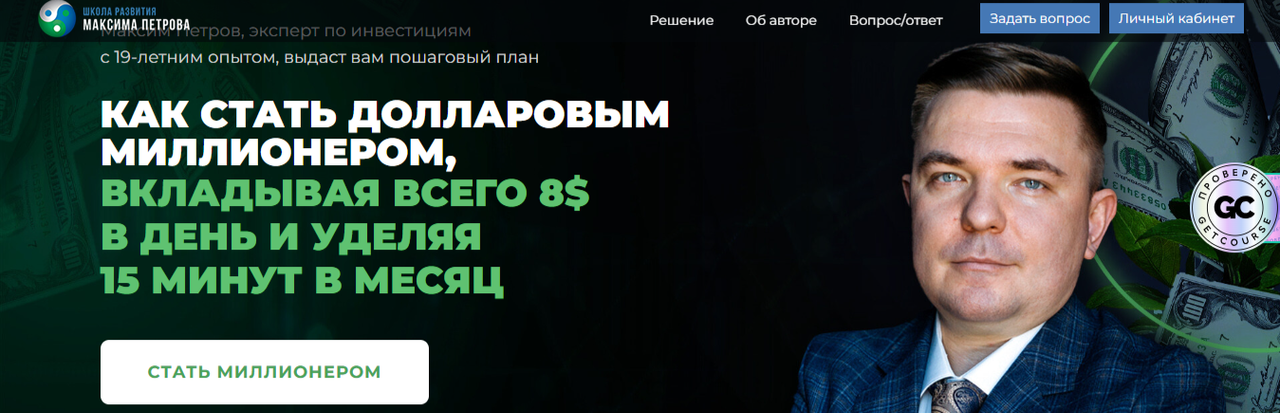 Каждый, кто будет повторять эти шаги вместе с Максимом, создаст за 15 лет капитал 1 000 000 долларов — с минимальным вложением денег и времени. Легко и доступно даже для человека с нулевыми знаниями об инвестировании.