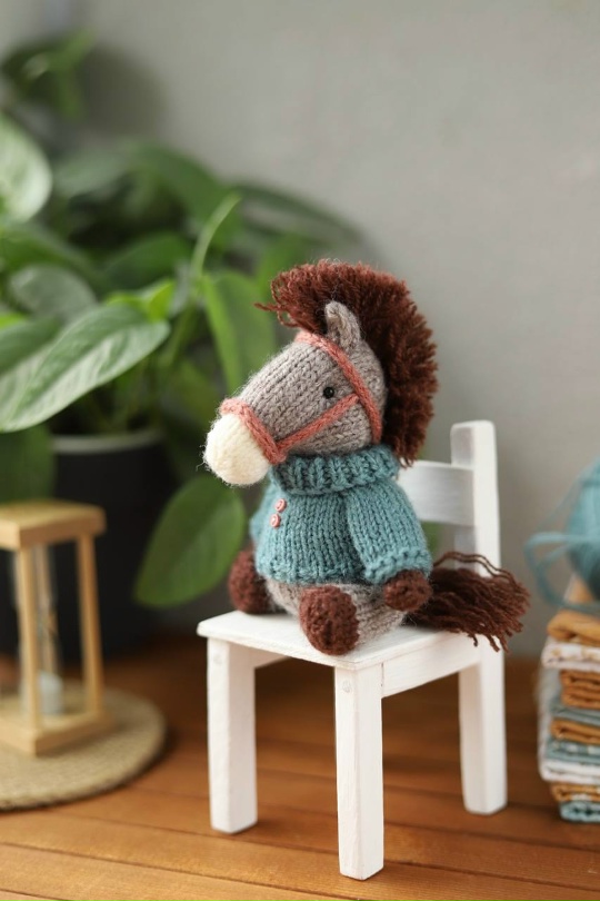 • Размер этого жеребца 11 см., но помним про пряжу и плотность вязания