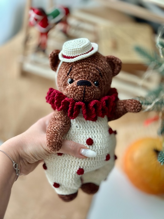Мк по вязанию крючком мишки из микро велюра 3мм с комплектом одежды. Рост мишки 24см.