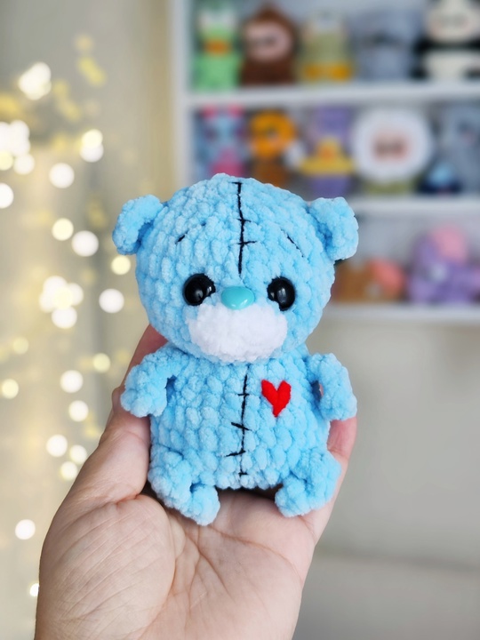 Игрушка из этой пряжи получается примерно 11-12см в зависимости от качества пряжи, номера крючка и плотности вязания.