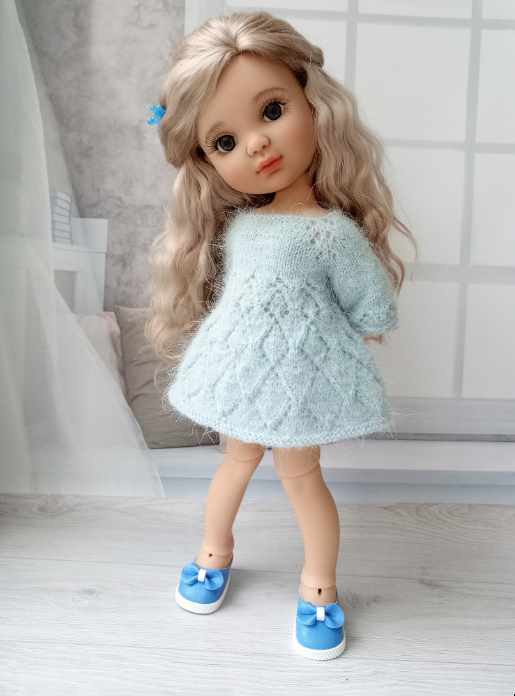 Платье для кукол Паола Рейна Пряжа Пух Норки Спицы 1,5мм
