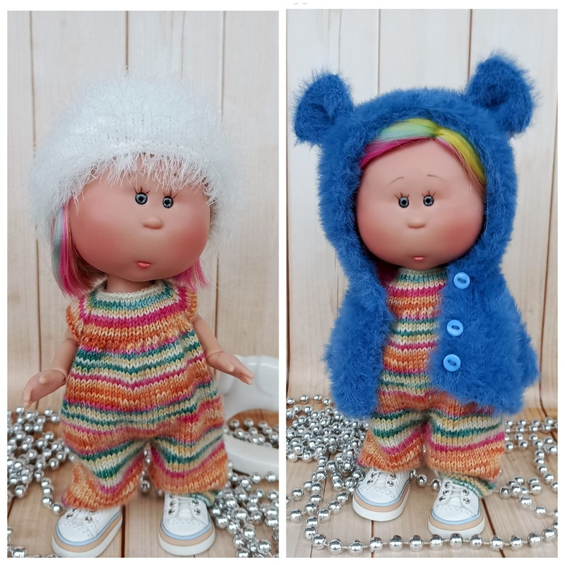 Комплект состоит из пестрого комбинезона, без рукава из носочной пряжи секционного окрашивания-нить сама ложится в узор. И укороченной шубки, с большим капюшоном и ушками на капюшоне из Меха норки. Бонусом добавила описание пушистой шапочки и варежек. Для работы нам потребуются- пряжа-Alize Superwash Artisan, 75% шерсть супервош, 25% полиамид, 100 г420 м- для комбеза, номер моего цвета-9012, пряжа-Пух норки- 90% пух норки, 10% ПЭ, 350м/50г.-для варежек, из Китайского Пуха норки я вяжу в одну нить и без доп.нити. Мех норки- Полиэстер 100%, 680 м, 100 г Я вязала в 2 нити, без каких-либо добавок. вес шубки-32 гр спицы-1.25, чулочные Подробные, порядные, попетельные описания, сопровождающиеся фото промежуточных этапов работы. Мастер-класс в формате pdf файла. Видео нет.