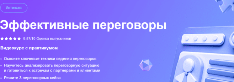 Освойте ключевые техники и стратегии ведения переговоров. Научитесь анализировать переговорные ситуации, эффективно готовиться к встречам с партнерами и клиентами, а главное — уверенно отстаивать свою позицию. Получите практические инструменты для достижения успеха в деловом общении.