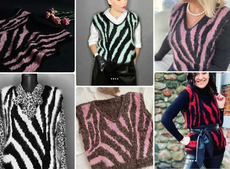 Схему жаккарда для жилета я искала долго: очень хотелось нетривиальный, интересный узор полосок, присутствие вертикалей, что, как мы знаем, нас стройнит. В итоге мне удалось создать попетельные схемы жаккарда на каждый из размеров. Несколько вечеров, и в вашем гардеробе появится настоящая бомба!