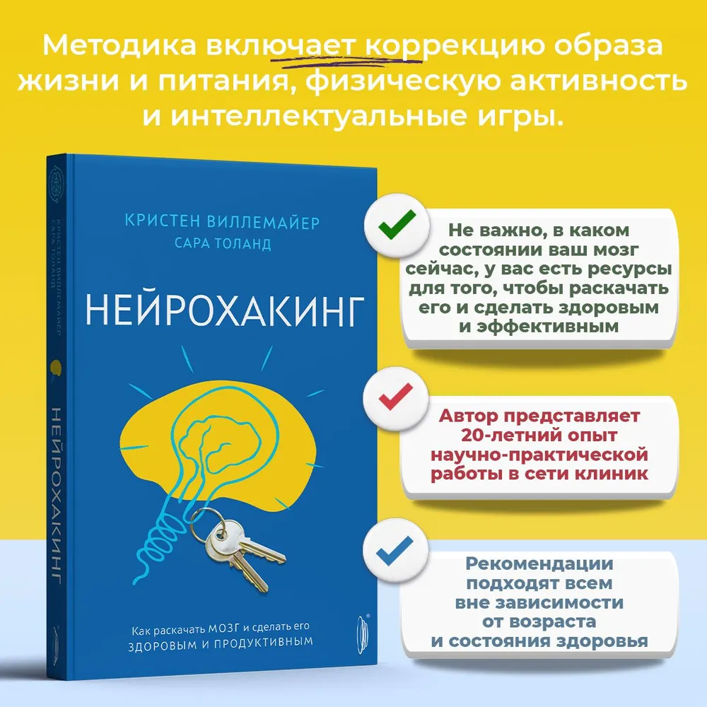 — преодолеете негативные мысли и стресс. Согласитесь, в ваших руках не просто книга о мозге и книга про интеллект: здесь и нейропсихология, и саморазвитие, и многое другое. «Я написала эту книгу, чтобы показать, не важно, в каком состоянии ваш мозг сейчас, у вас есть ресурсы для того, чтобы раскачать его и сделать здоровым и эффективным». Д-р Кристен Виллемайер.