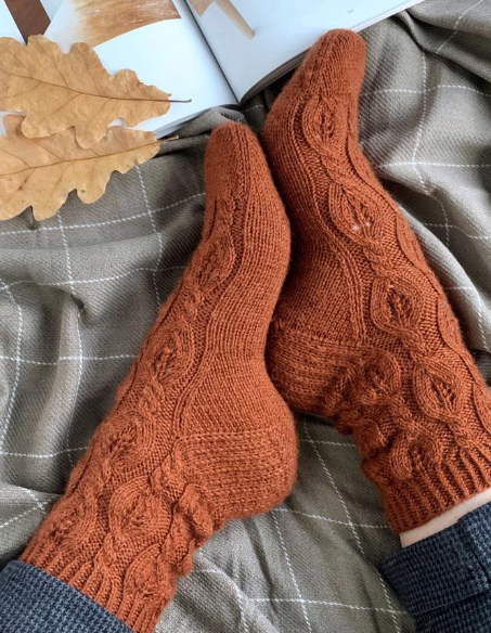 Овечья шерсть (например, классическая Regia, Gruendl Hot Socks), шерсть+як (Regia Premium Merino yak), Katia Camel, Andes, Austermann Step, Lana Grossa Meilenweit. Плотность 32 петли — 10 см. Спицы 2-3 мм;