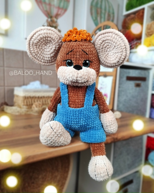 Игрушка цельновязанная (тело и голова — одна деталь), ручки и ножки ввязываются.