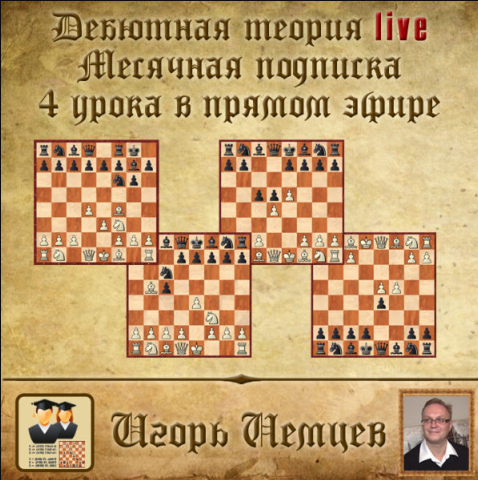 [Обучение шахматам] Дебютная теория live. Месячная подписка 4 часовых урока + бонусное видео. live 133, 134, 135, 136 [Игорь Немцев]