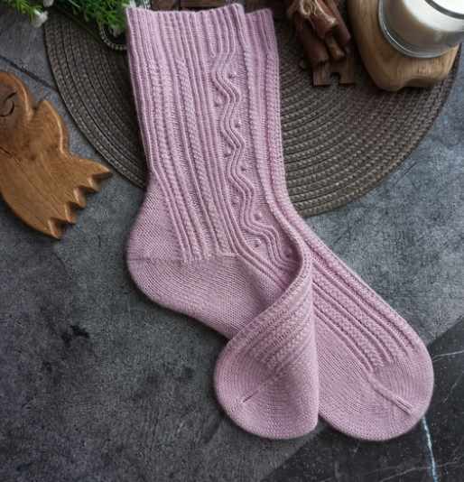 -подробное описание носков в формате PDF с видео сопровождением, qr на видео -носки связаны от манжеты; -пятка «стронг»; -узор легкий; -уровень сложности: внимательный новичок -пряжа классическая носочного состава, метражом 200-210 метров в 50гр.; -размеры 36-43; -мысок ленточный; -плотность вязания 34п.46р.