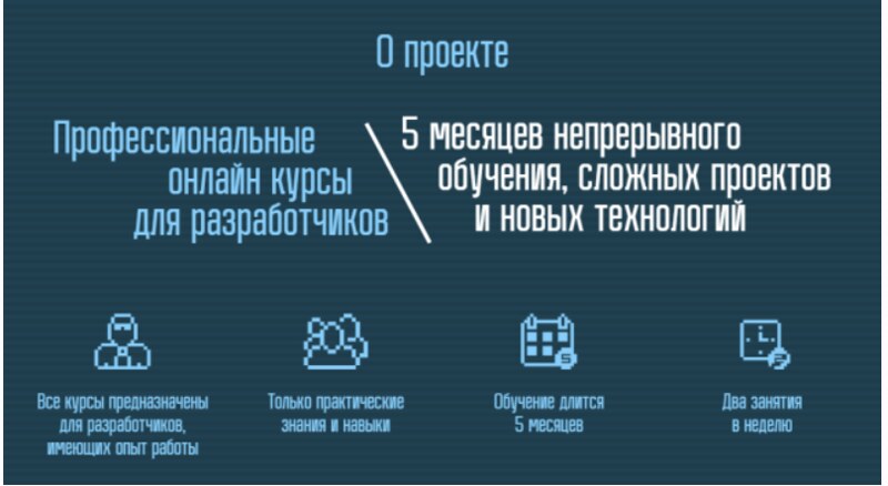 Особенности курса: Курс подготовлен для разработчиков, имеющих опыт работы. Только практические знания и технологии
