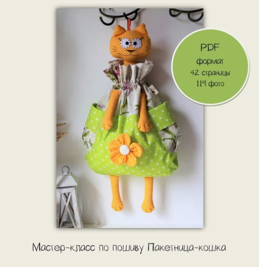 аксессуары для дома, выкройка, екатерина глазунова, пакетница, пакетница кошка, шитье