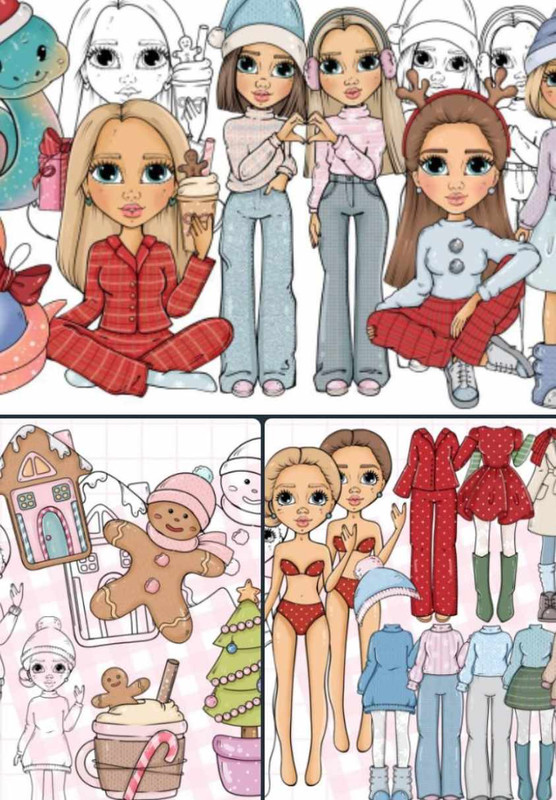 Иллюстрации в png формате высокого качества 300dpi на прозрачном фоне + для распечатки бумажные куклы с засечками. Куколки с одеждой + раскраски, иллюстрации для дизайна. Подходят для декора открыток ,обложек, любых поверхностей + детских книг на липучках.