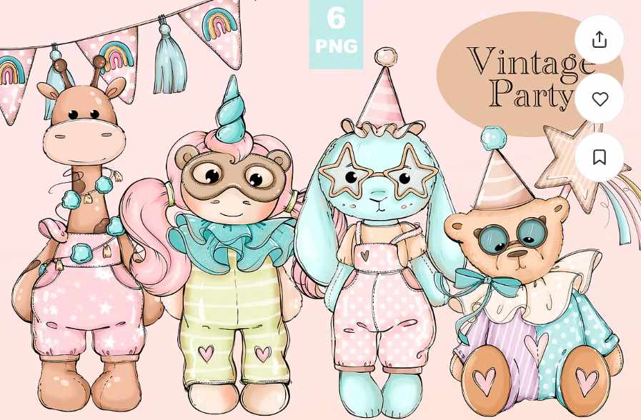 [Palmpink Illustrations] Винтажные плюшевые игрушки Клип-арт [Дарья Львова]