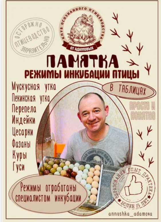 Рады поделиться с вами нашей памяткой «Режимы инкубации птицы»!
