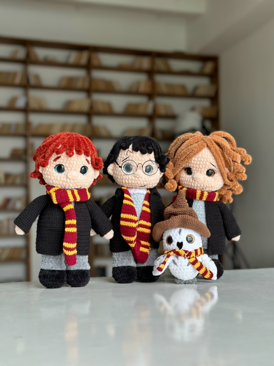 По одному описанию Вы свяжете трёх человечков и совушку!