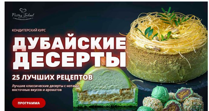 А что если научиться делать десерты и тесто самостоятельно? Если хотите быть самым модным кондитером, то курс «Дубайские десерты» точно для Вас Посмотрите, какие шедевры мы подготовили