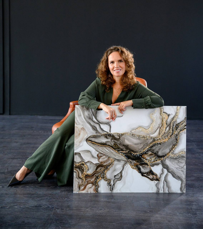 Август мы начнем с большой картины PRO-уровня в новой технике — мокрый акрил Роскошный кит буквально заплывет в наши ВАУ-эффекты!