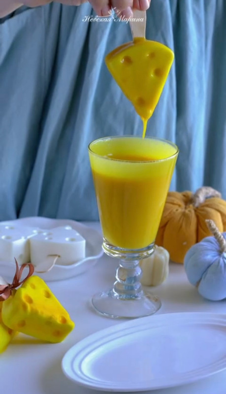 А еще я сняла видео рецепт специально для глазури, зефир грушевый с сыром Дорблю и грецким орехом. Зефир сделан в виде кусочков сыра и покрыт глазурью на белом шоколаде и на манговом соке.