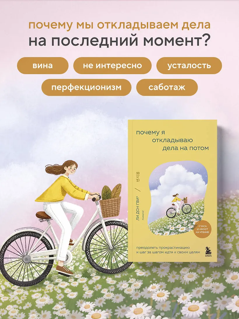 Почему мы откладываем дела на завтра или ждем, пока не наступит дедлайн? Причина не в лени и не в слабоволии. За этой привычкой часто стоят тревога, перфекционизм и усталость от бесконечных ожиданий. Профессор Ли Дон Гви, посвятивший более 20 лет консультативной психологии, вместе со своей исследовательской группой выделил пять типов прокрастинаторов и подробно описал их особенности. Авторы показывают, что прокрастинация — это не лень, а способ психики защитить нас от перегрузки. Они объясняют, как понять свои внутренние причины откладывать дела и шаг за шагом вернуть энергию и уверенность. Эта книга поможет перестать ругать себя и начать действовать — спокойно, осознанно и в своем темпе.