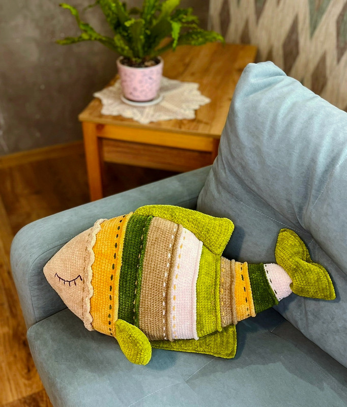 Мастер-класс по вязанию плюшевой подушки Рыба.