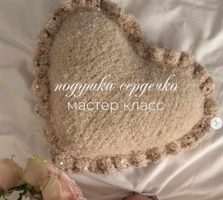 Совместное вязание подушек сердечко спицами , как из Pinterest
