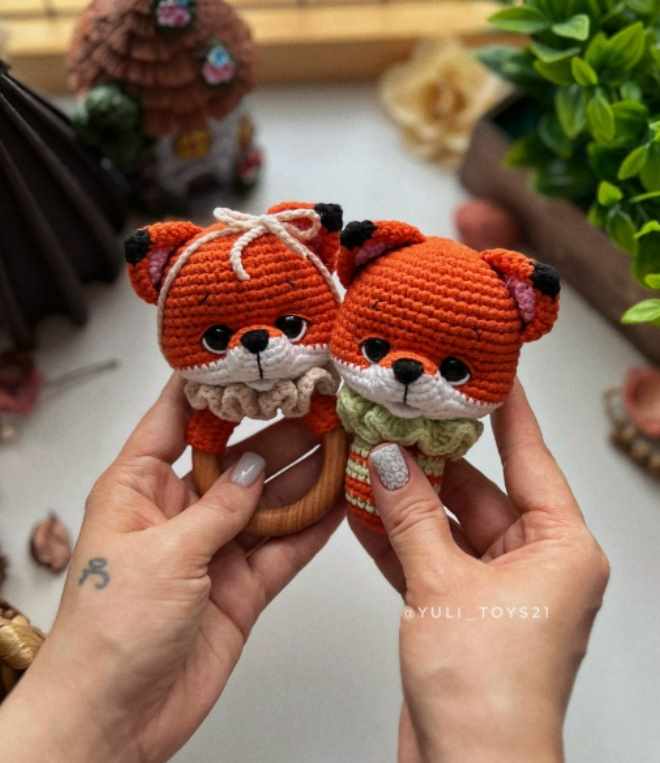 Подробное описание 2-х вариантов вязания погремушки (на колечке и на ножке);