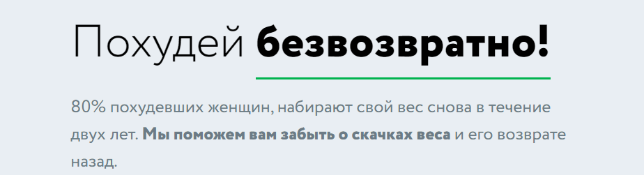 80% женщин повторно набирают вес в течение 2 лет после похудения, так как пытаются похудеть с помощью диет и тренировок, не работая с настоящей причиной лишнего веса.