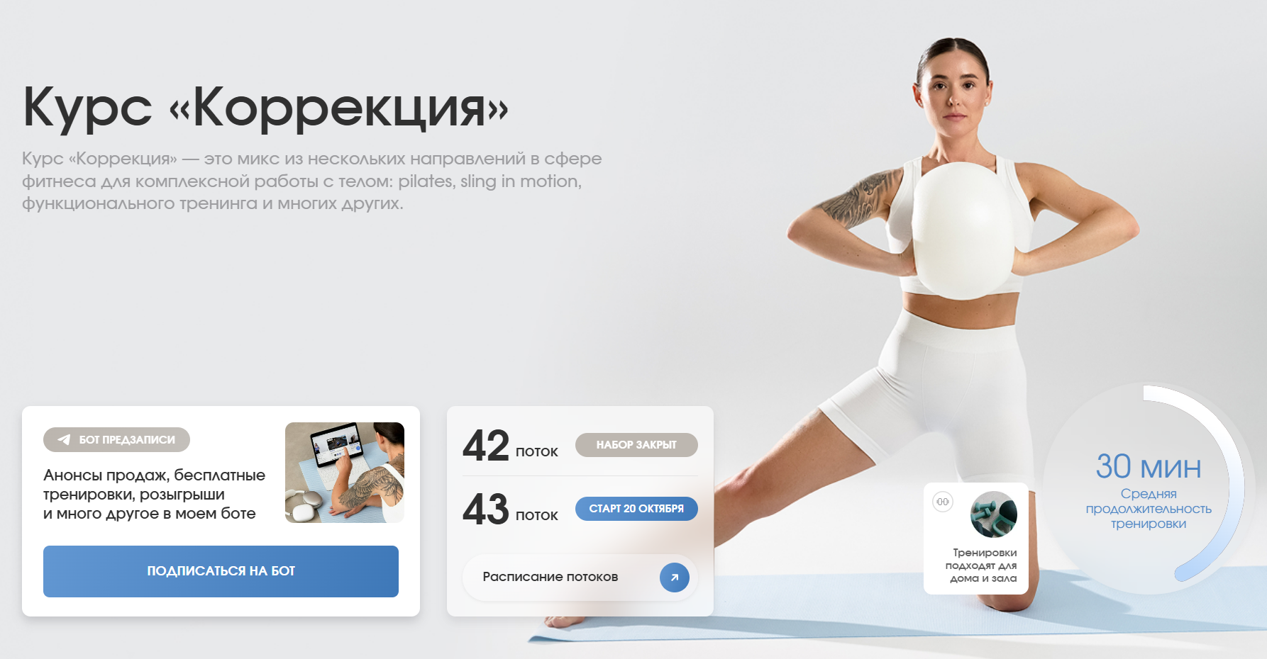 Курс Коррекция помогает избавиться от болей, улучшить осанку и восстановить баланс тела, устраняя первопричины проблем, а не только их последствия.