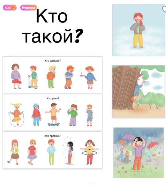 Пособие «Кто такой?»для развития словесно логического мышления, способностей устанавливать причинно-следственные связи, формирования навыка ответов на вопросы, для развития понимания речи и умение составлять рассказы с опорой на сюжетные картины.
