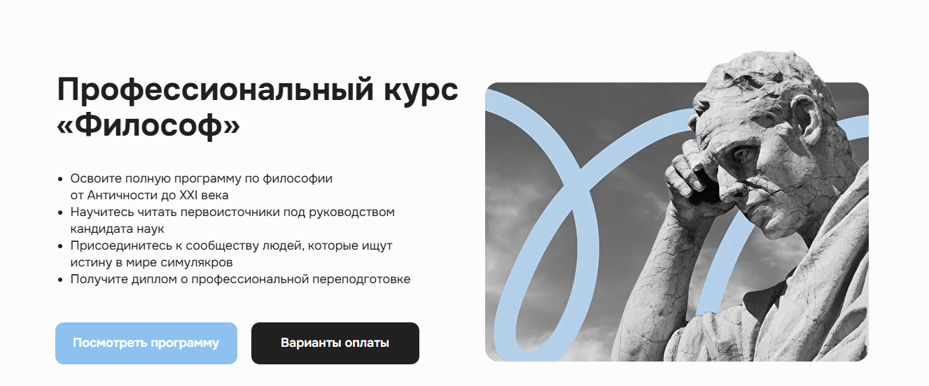 Освоите уникальную программу, которая выходит за пределы университетской и охватывает философию XX и XXI века.
