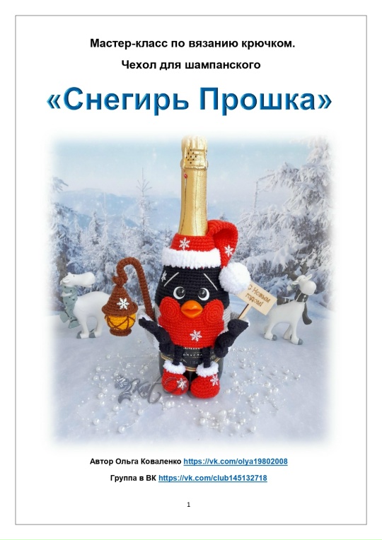[ПрикОльгины вязалки] Чехол для шампанского Снегирь Прошка [Ольга Коваленко]