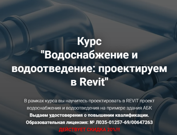 Уникальный формат курса. Вы сможете вместе с нами пошагово, вникая в каждый нюанс, разработать расчеты и чертежи водоснабжения и водоотведения, используя самые популярные графические редакторы Revit и AutoCAD.