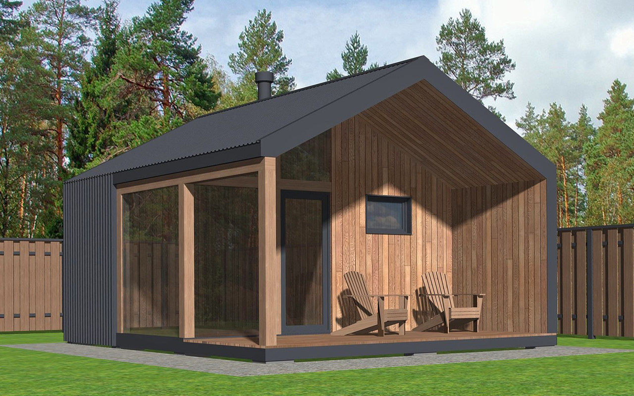 Проект каркасной бани D-65 в стиле барнхаус [Дмитрий Новиков]