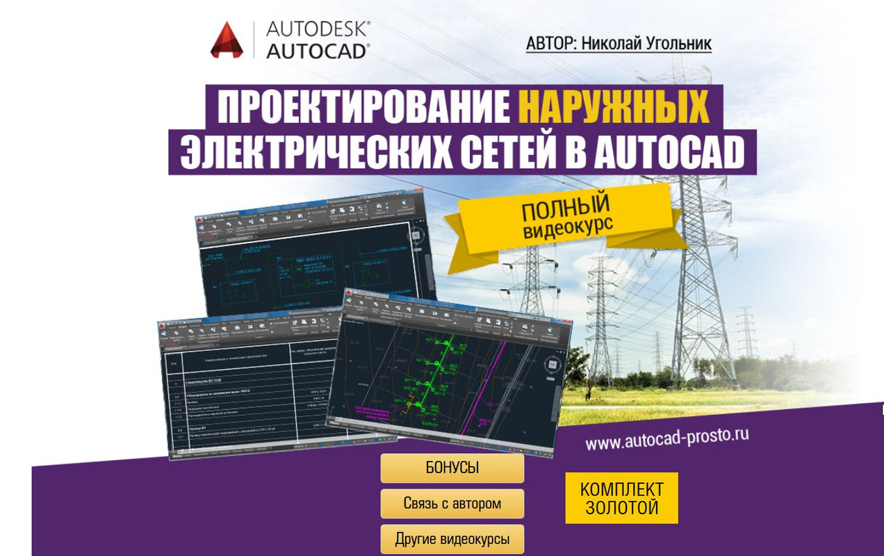 Проектирование наружных электросетей в Autocad. Комплект Золотой [Николай Угольник]