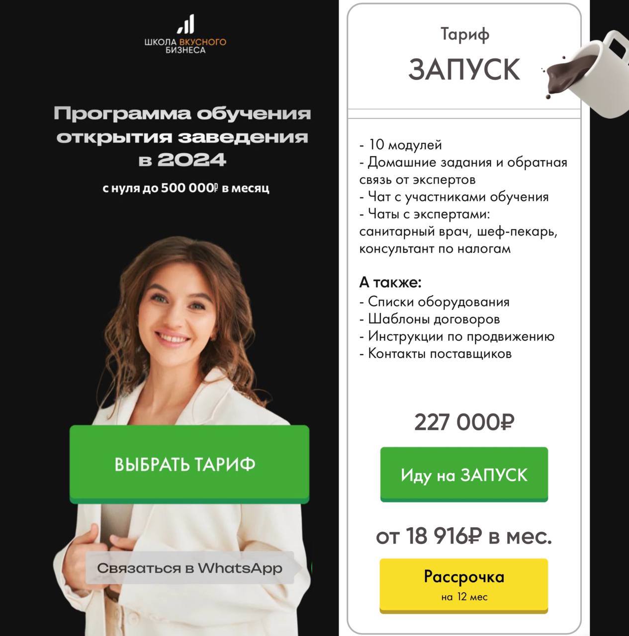 Программа обучения открытия заведения в 2024. Тариф Запуск [Александра Глебовна]